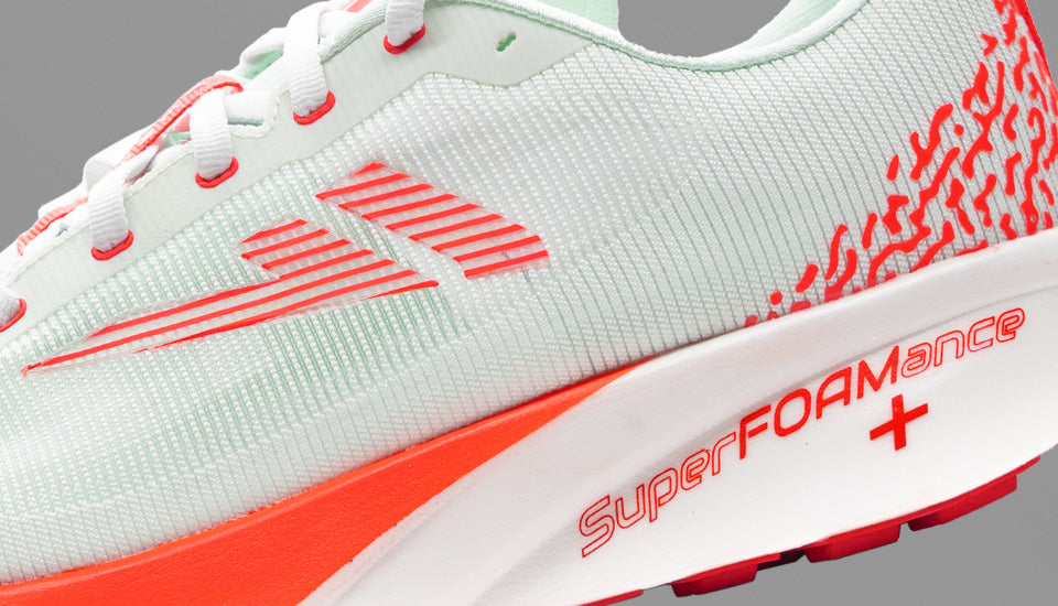 Erittäin kevyestä ja pitävästä kumiseoksesta valmistettu ulkopohja 3 mm nappulakuvioinnilla tarjoaa pitoa maastossa, säilyttäen nopean ja rullaavan juoksutuntuman sekä kulutuskestävyyden asfaltilla. Vaimennuksesta vastaa VJ:n edistynein typpi-injektoitu välipohjamateriaali, SuperFOAMance+. Responsiivinen välipohja on erittäin kevyt ja tarjoaa vielä aiempaakin enemmän kimmoisuutta ja energianpalautusta.