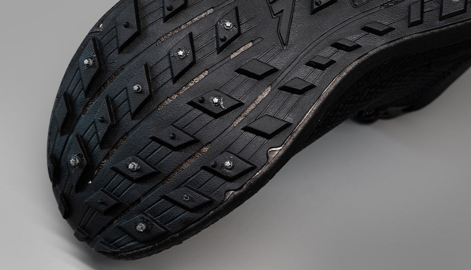 The Superior Contact -outsole with its 17 star-shaped carbon steel studs provide and ensure the best grip on the planet in any weather. On hard surfaces and inside, the outsole’s rubber lugs will take care of the grip and comfort.