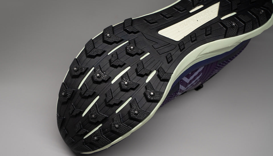 The Superior Contact -outsole features 17 carbon steel, star-shaped metal studs that provide superior grip on slippery conditions.