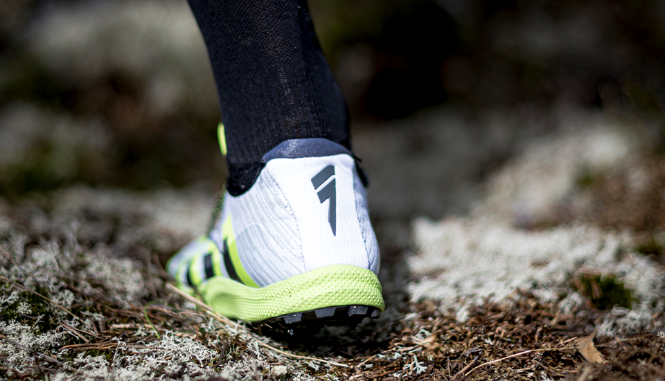 The Superior Contact -outsole features 13 star-shaped carbon steel studs that ensure grip on slippery roots, moss and leaves you come across in the forest.