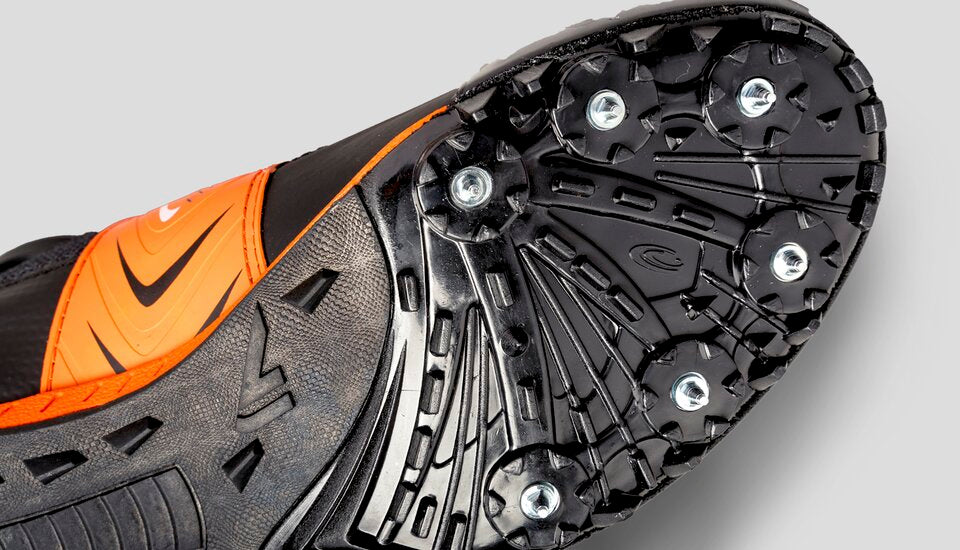 VJ BOLD X Spike is a light spike shoe for rapid advancement. The shoe's upper is Swiss made special Schoeller Keprotec®-material, which is super durable and light. The upper is also Bluesign® -certified, meaning only sustainably developed production methods have been used. The sole's front features 6 spikes that are interchangeable and on the back of the sole there's 4 metal studs. The sole's profile enables the foot to stay in the correct position for optimal advancement.