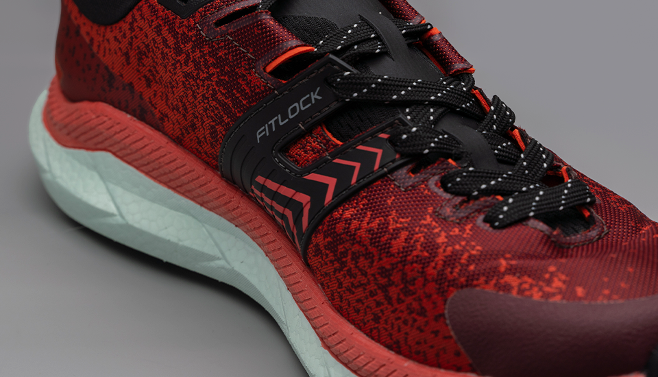Our innovative Fitlock-system offers an optimal fit for the shoe by locking the foot from the arch. It also offers extra protection by protecting the arch from the impacts the foot is facing while running.