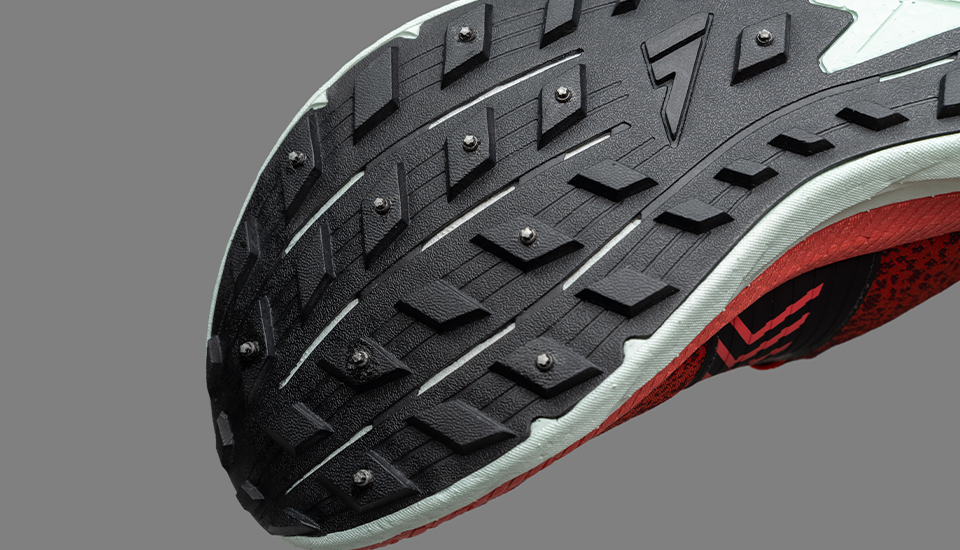 The Superior Contact -outsole features 17 carbon steel, star-shaped metal studs that provide superior grip on slippery conditions.