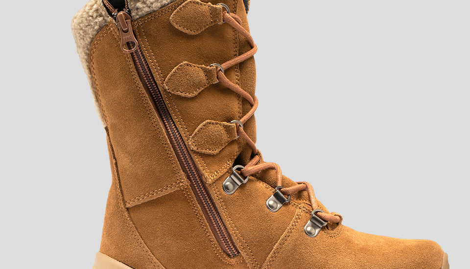The shoe's upper is made of water-repellent suede leather. Hilla's lining is fleece on the bootleg and warm wool everywhere else, so your feet will stay warm even on the coldest days of winter. The inner side of the shoe features a zipper for easy wearability and comfort, so no more struggling with the laces! The shoe's midsole insulates cold and dampens hits from the ground on your winter strolls, making it very comfortable to wear.
