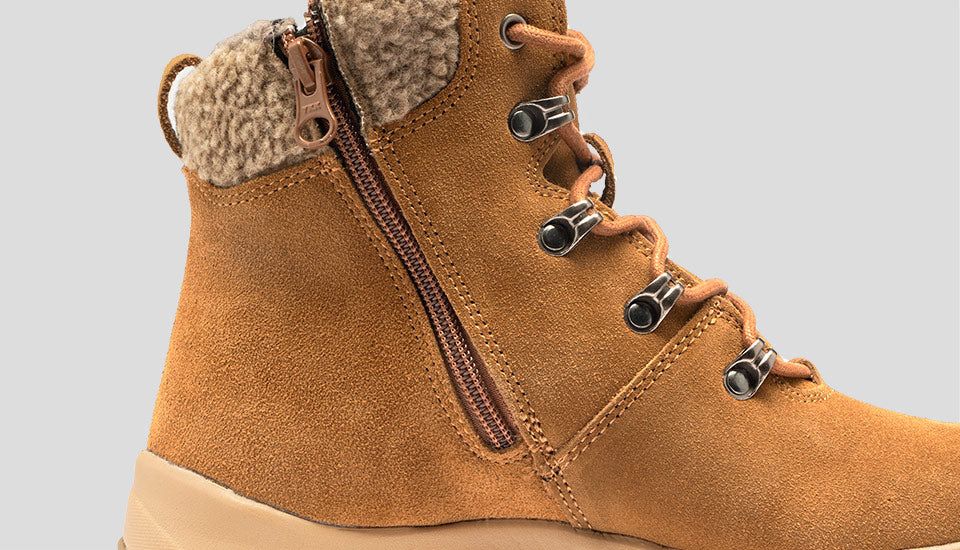 The water repellent suede upper with wool lining keeps your feet warm even in severe winter conditions. The zipper makes the shoe quick and effortless to wear.