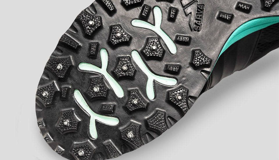 Cushioned and responsive stud shoe for winter running and -outdoors!